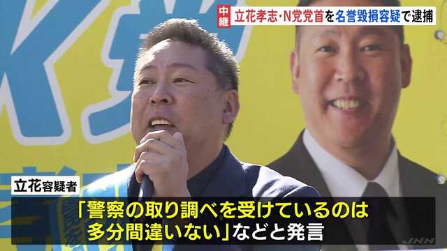 | | NHK党の党首・立花孝志容疑者 示談申し入れも…遺族側「受け入れられない」と拒否 …て逮捕された立花孝志容疑者が一転して遺族側に示談を申し入れましたが、遺族側が拒否したことがわかりました。 NHK党の党首・立花孝志容疑者(58)は、選… (出典:TBS NEWS DIG Powered by JNN) |